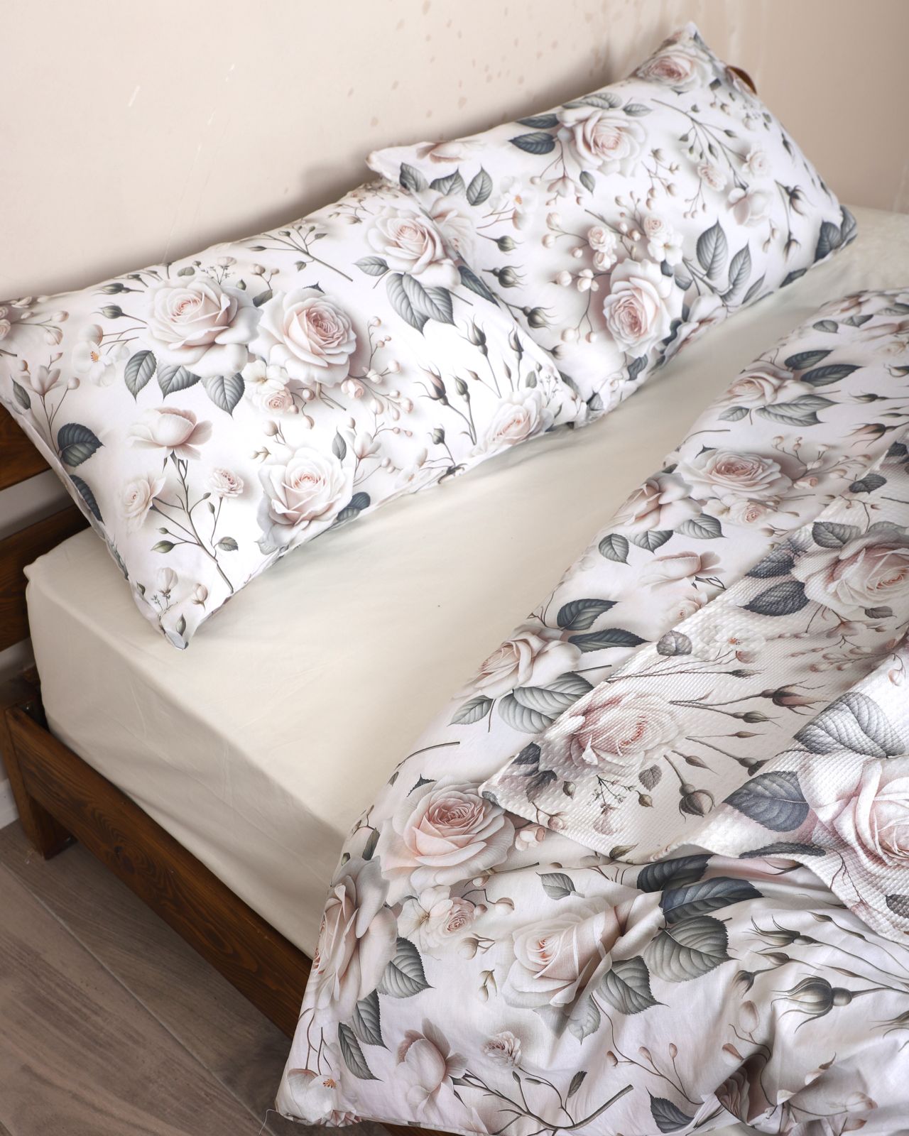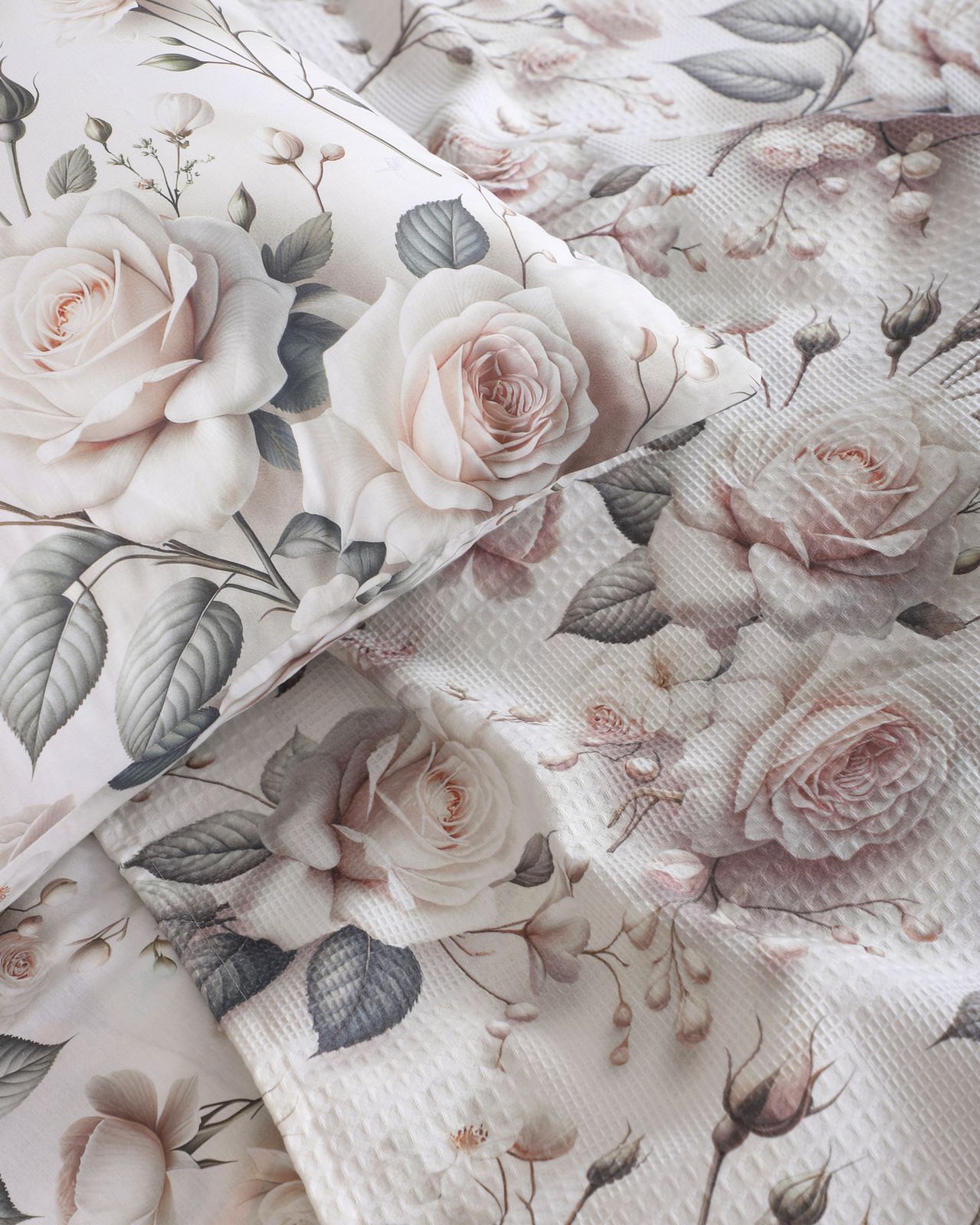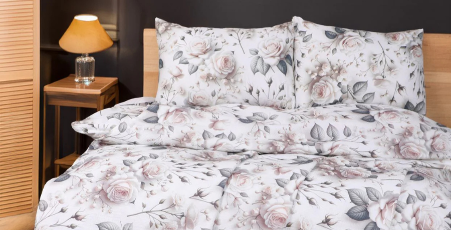 Çeyiz Seti - 5D Dijital Baskılı Gül Desenli %100 Pamuk, Şık Kutulu