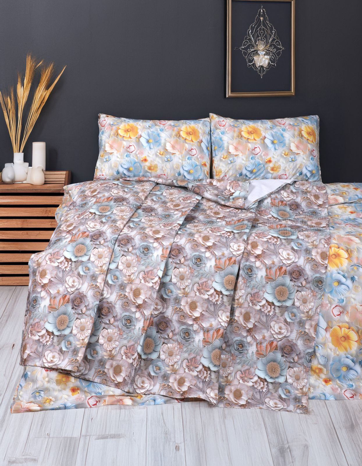 Poplin pamuk kumaşı sayesinde kırışmaya karşı dayanıklı, yumuşak ve parlak bir görünüme sahip olan bu nevresim takımı, hem estetik hem de konfor arayanlar için ideal bir tercih. 5D dijital baskı teknolojisi ile renkler ilk günkü canlılığını uzun süre korur.